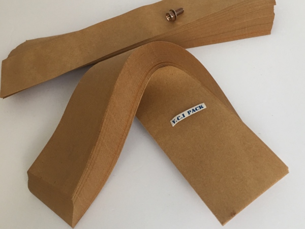 4、包裝過程---將含有緩蝕劑的面朝向金屬包裝,不覆膜防銹紙可作為金屬產(chǎn)品間墊層隔材使用,以免其他材質(zhì)阻隔材料含S、CL化學(xué)成分,影響防銹效果